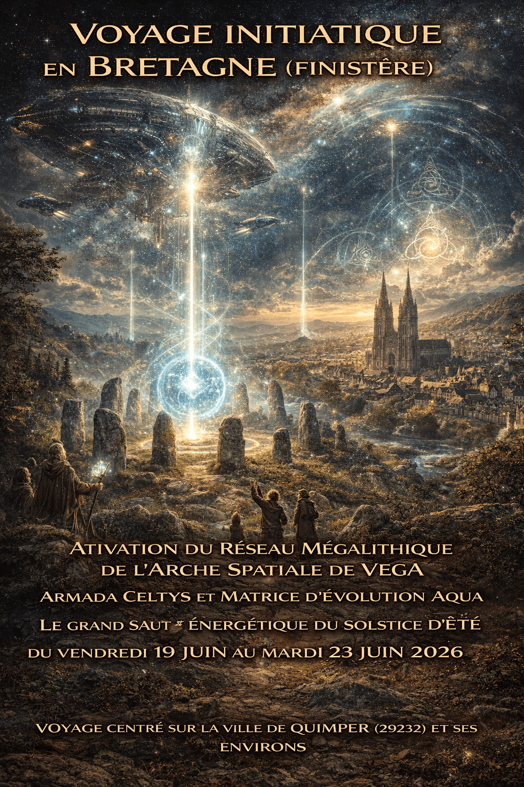 Du 19 au 23 juin 2026, à l’occasion du Solstice d’été, une convergence exceptionnelle se prépare sur les terres sacrées du Finistère, cœur celtique de la Bretagne. Autour de Quimper, nous activerons un ancien réseau énergétique :