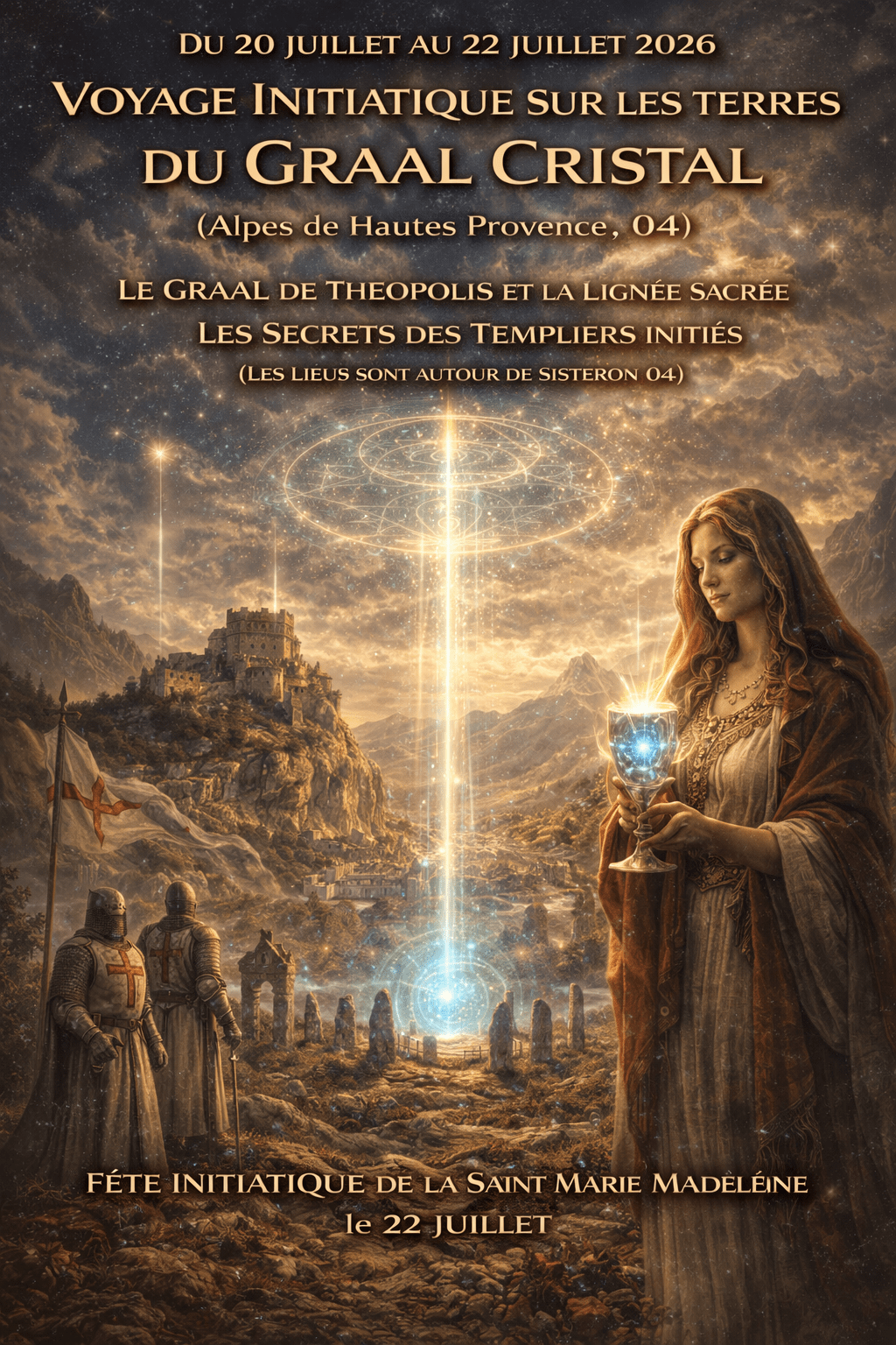 Plongez au cœur des mystères du Graal de Théopolis, sur une terre sacrée où les mémoires templières, les lignées christiques et les codes cristallins s'entrelacent. Ce voyage vous invite à une quête intérieure et cosmique, au croisement des enseignements initiatiques et des révélations oubliées.